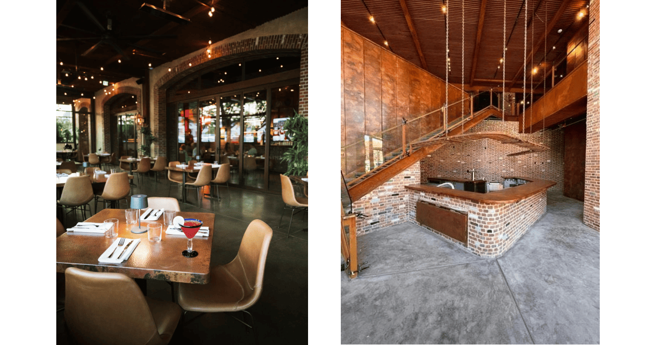 There’s a familiarity to it. The kind of place that feels established, not staged. Materials play a big role in that. Copper runs throughout the interiors, from the bar surfaces to the tabletops and wall cladding, adding depth and warmth without overpowering the space.