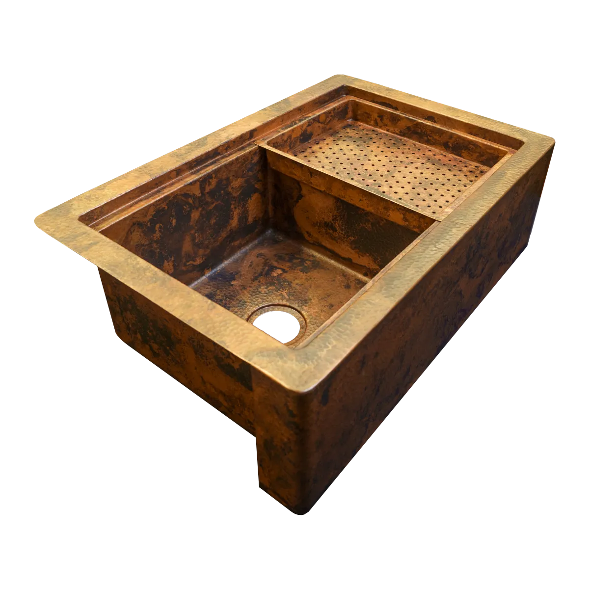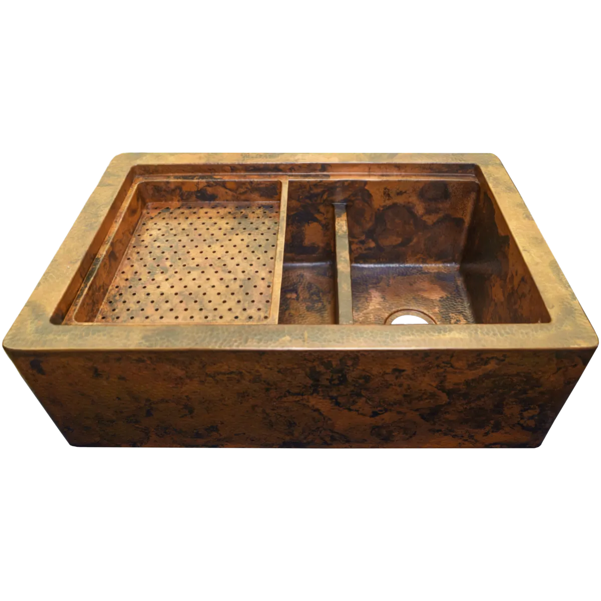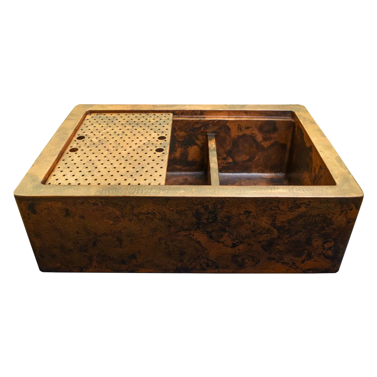Farmhouse Split Workstation Copper Kitchen Sink — Hand-Hammered