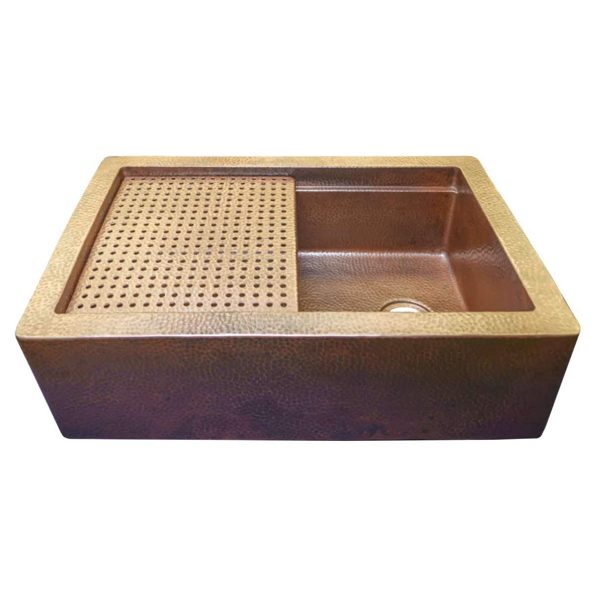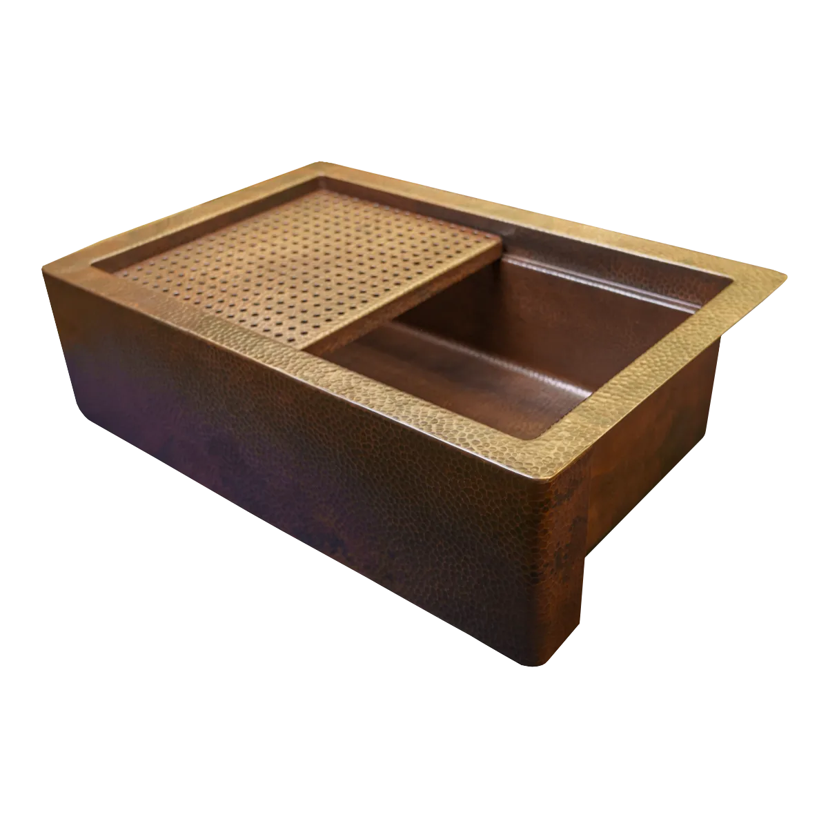 Farmhouse Workstation Copper Kitchen Sink — Hand-Hammered