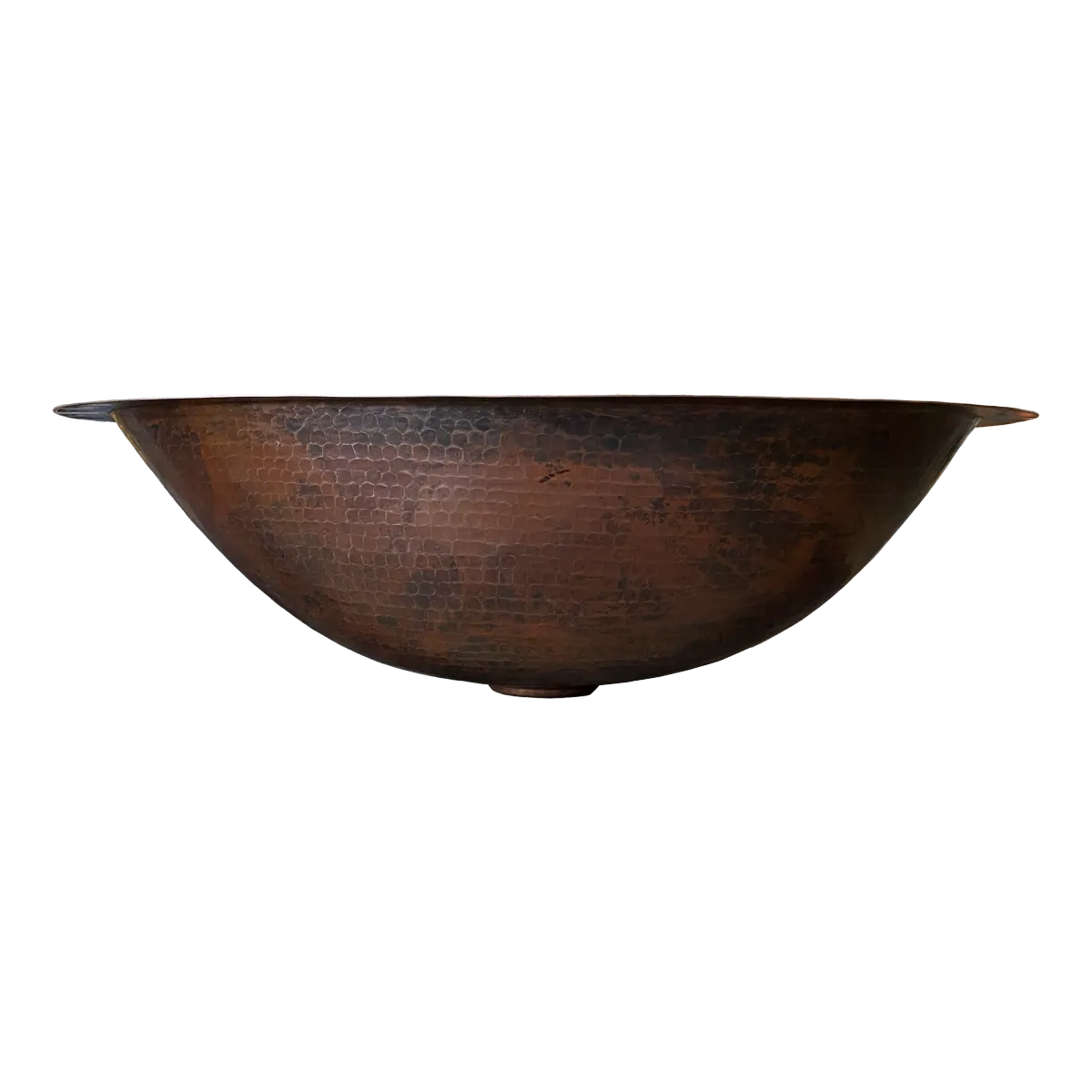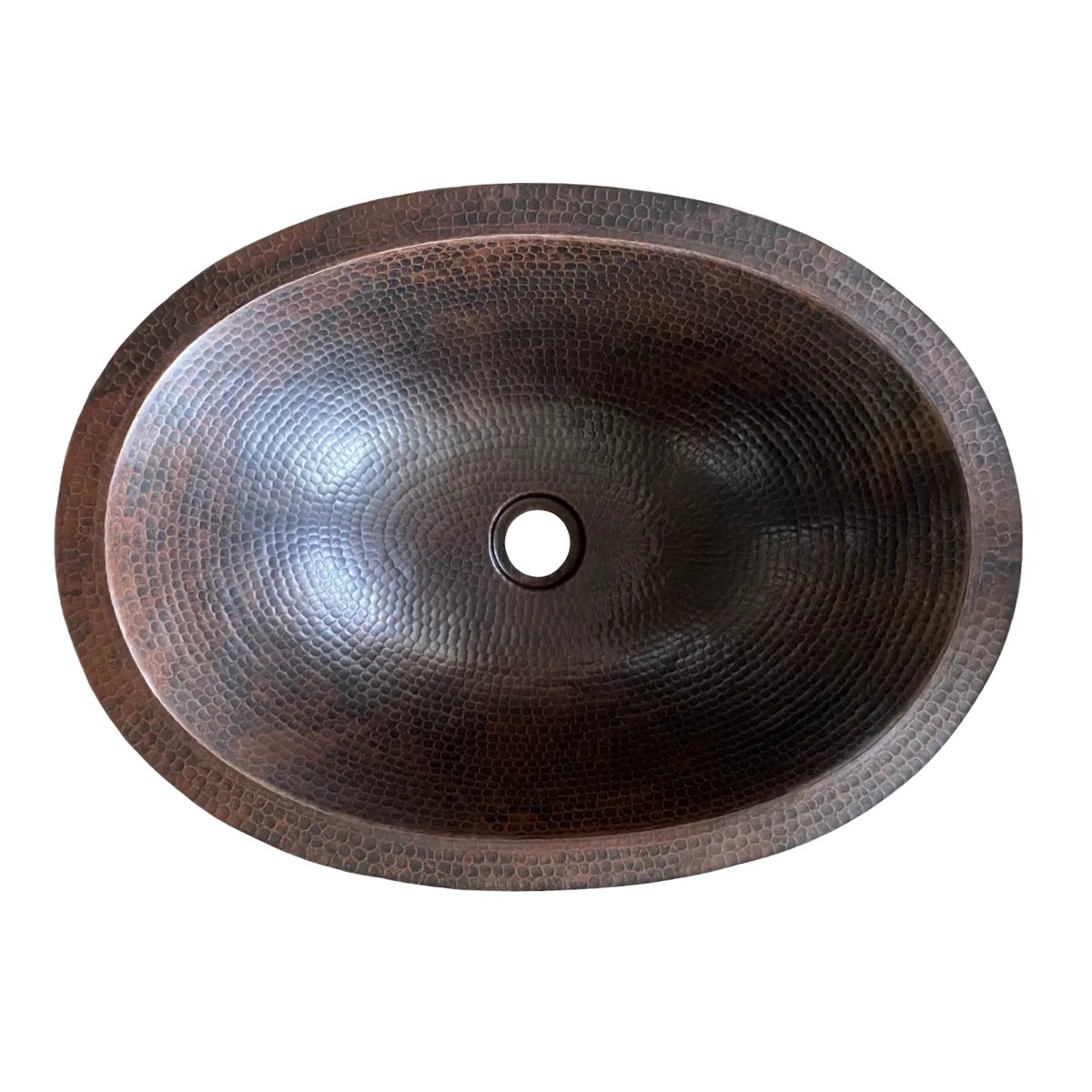 Oval undermount sink in our “Aged Copper” finish, in-line hammering and a 1.5” drain hole.