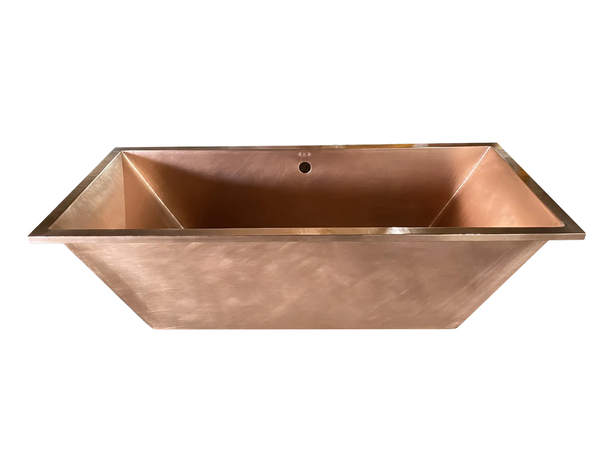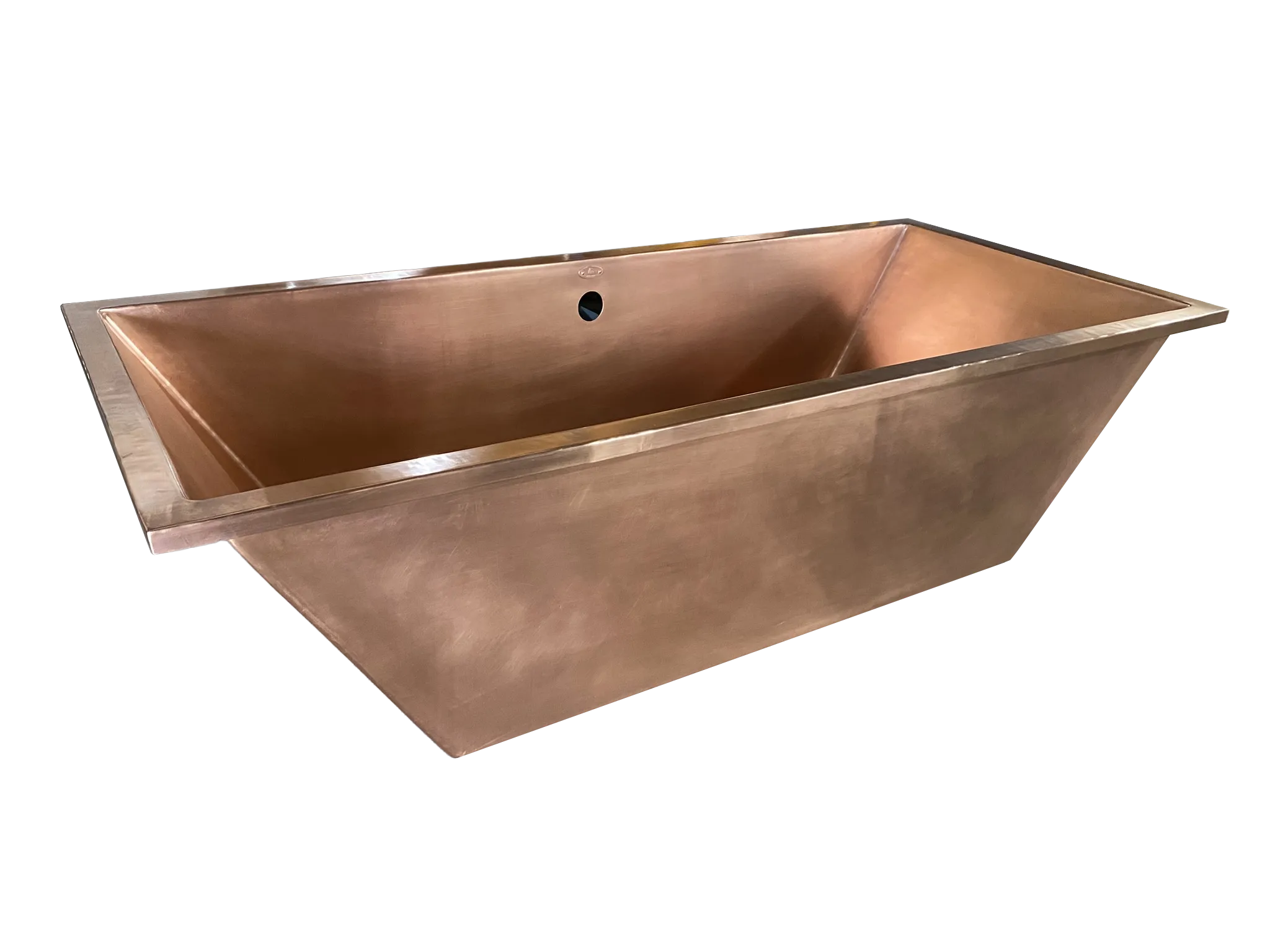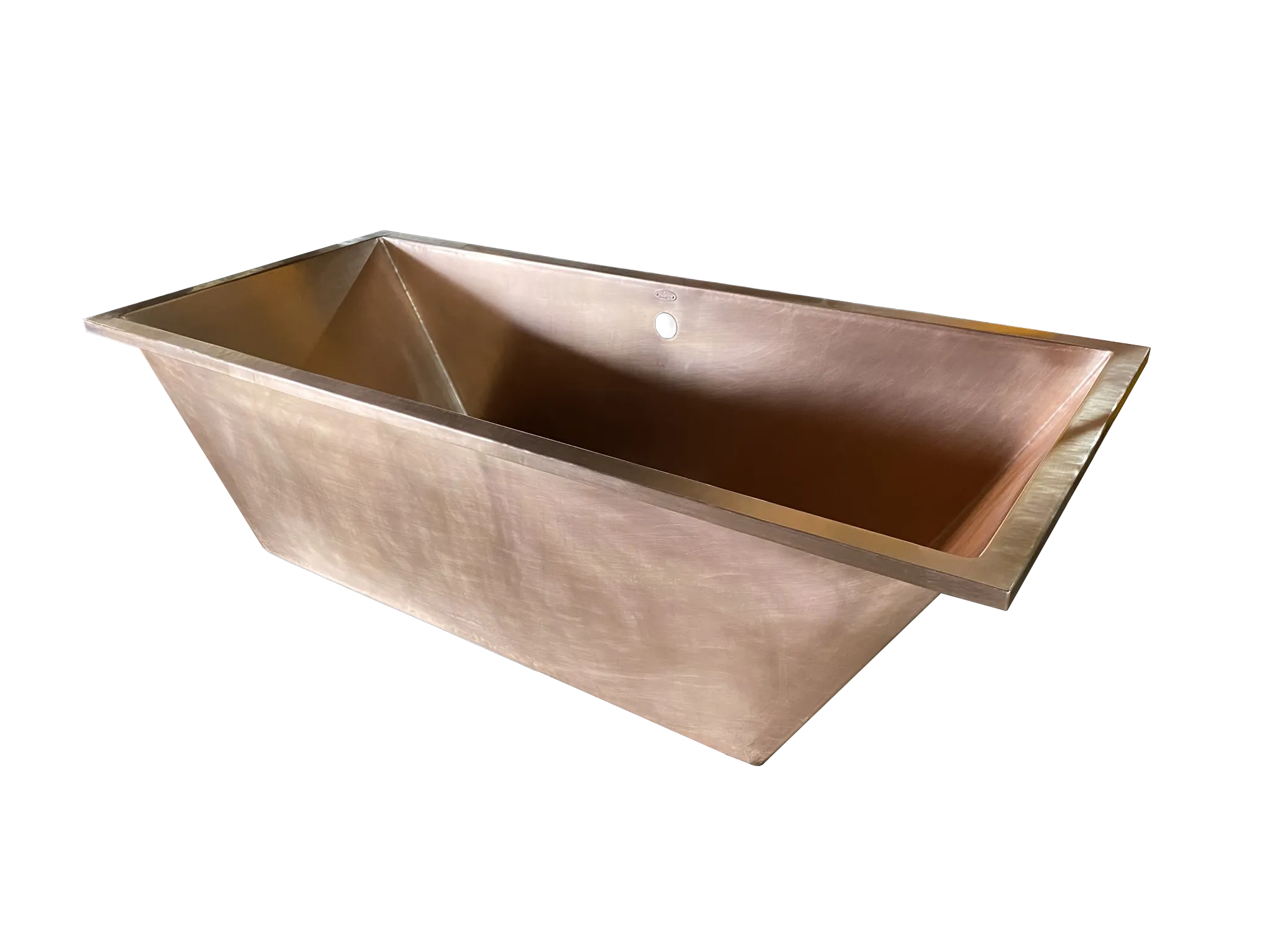 Rectangular Copper Drop-In Bathtub, smooth surface and “Matte Penny” Patina.