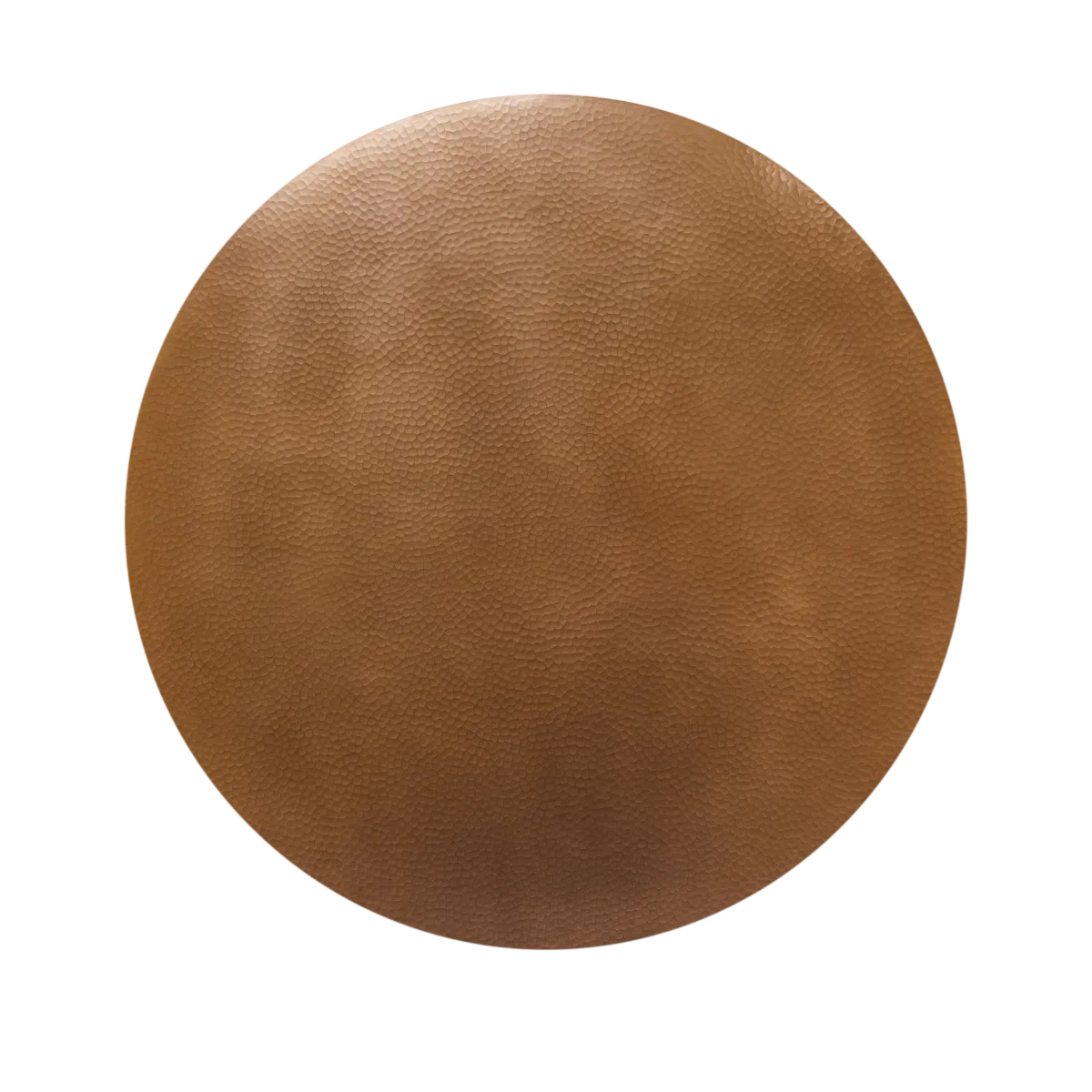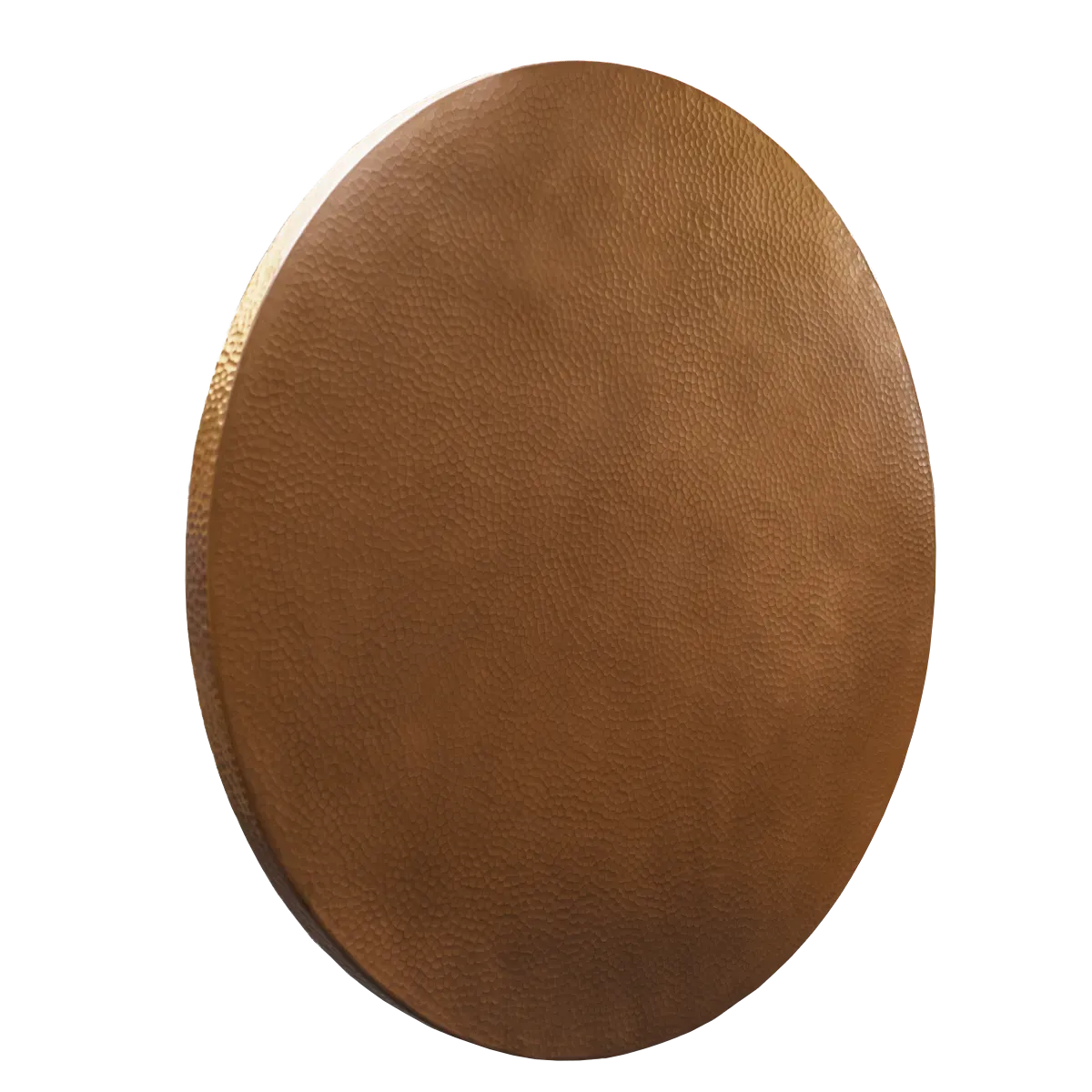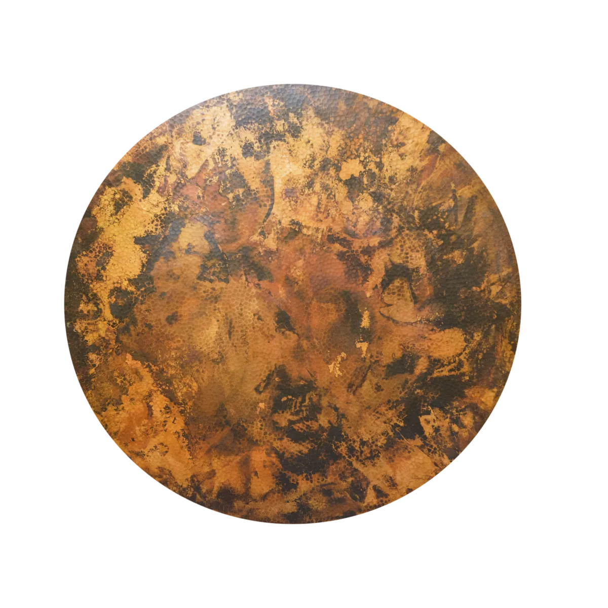 Round Tabletop, presented in three captivating patinas: the first and second photos showcase “Natural Classic” patina, while the third and fourth photos feature “Matte Penny” patina, the fifth photo display “Aged Brushed Copper” patina, the last two have “Rio Grande”. Each option boasts irregular hammering and a robust 1.5” thickness, ensuring both distinctive style and enduring durability.