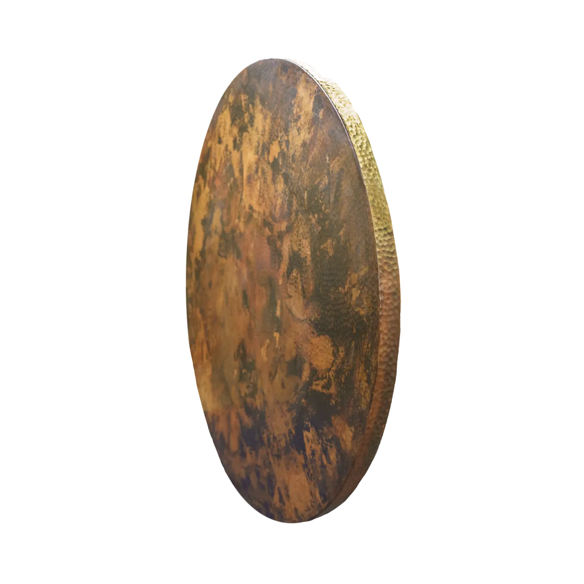 Hand-hammered by skilled artisans in Santa Clara del Cobre, this round copper tabletop embodies the rich legacy of Mexican metalwork. Its fired patina—achieved through heat, oxidation, and time—gives each surface warm tones and a one-of-a-kind, organic depth.
