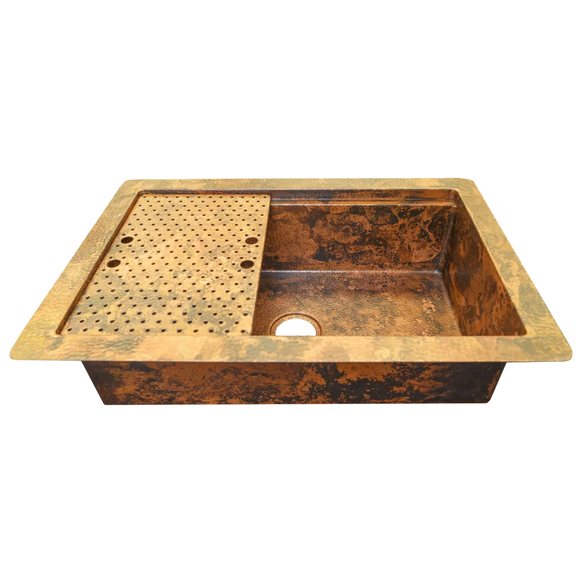 Copper Sink Drying Rack — Handcrafted by skilled artisans in Santa Clara del Cobre, Mexico, using 99% recycled copper, this rack combines durability, functionality, and artisanal elegance. Designed to rest perfectly inside your Monte Grande workstation sink, it provides a dedicated space for drying dishes, produce, and utensils while keeping your kitchen organized.