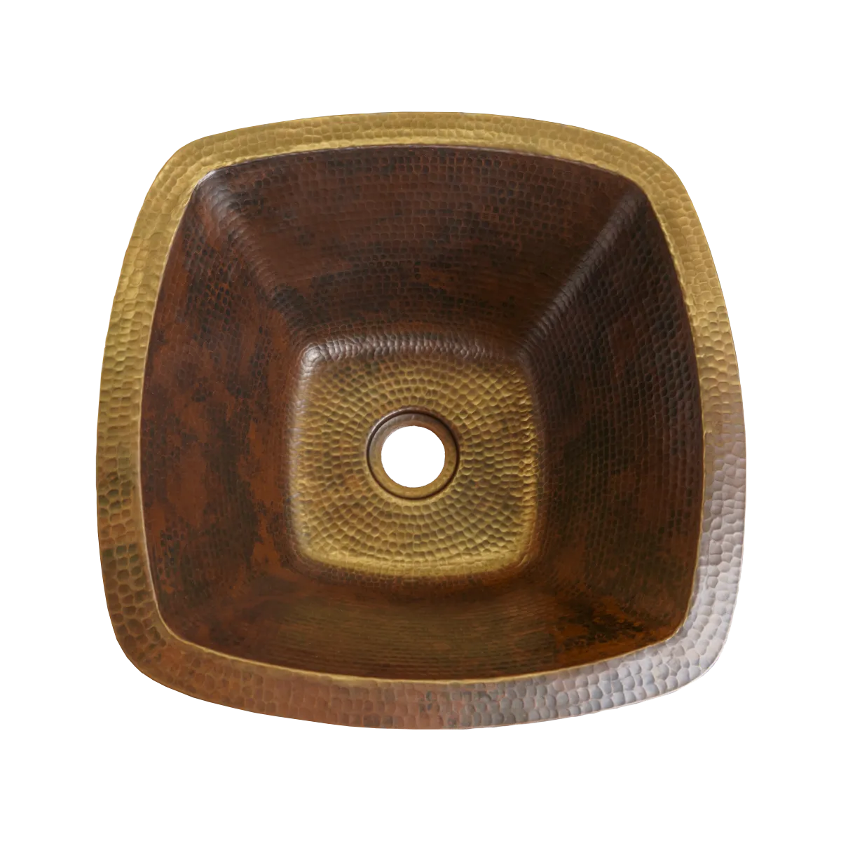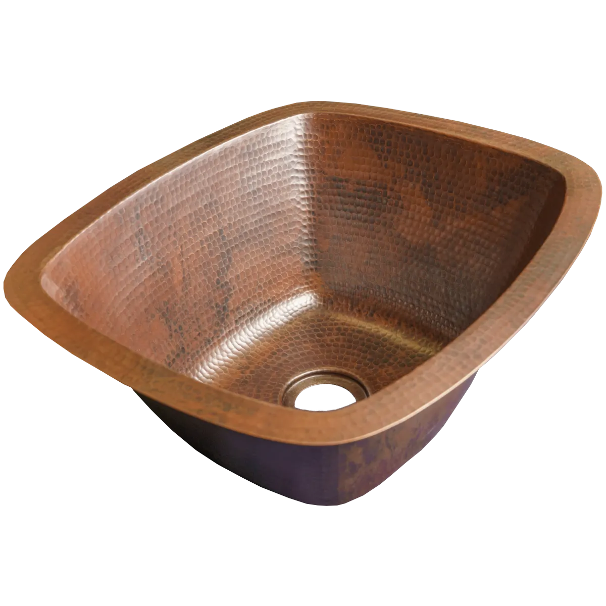 Square Copper Undermount Bathroom Sink — Hand-Hammered