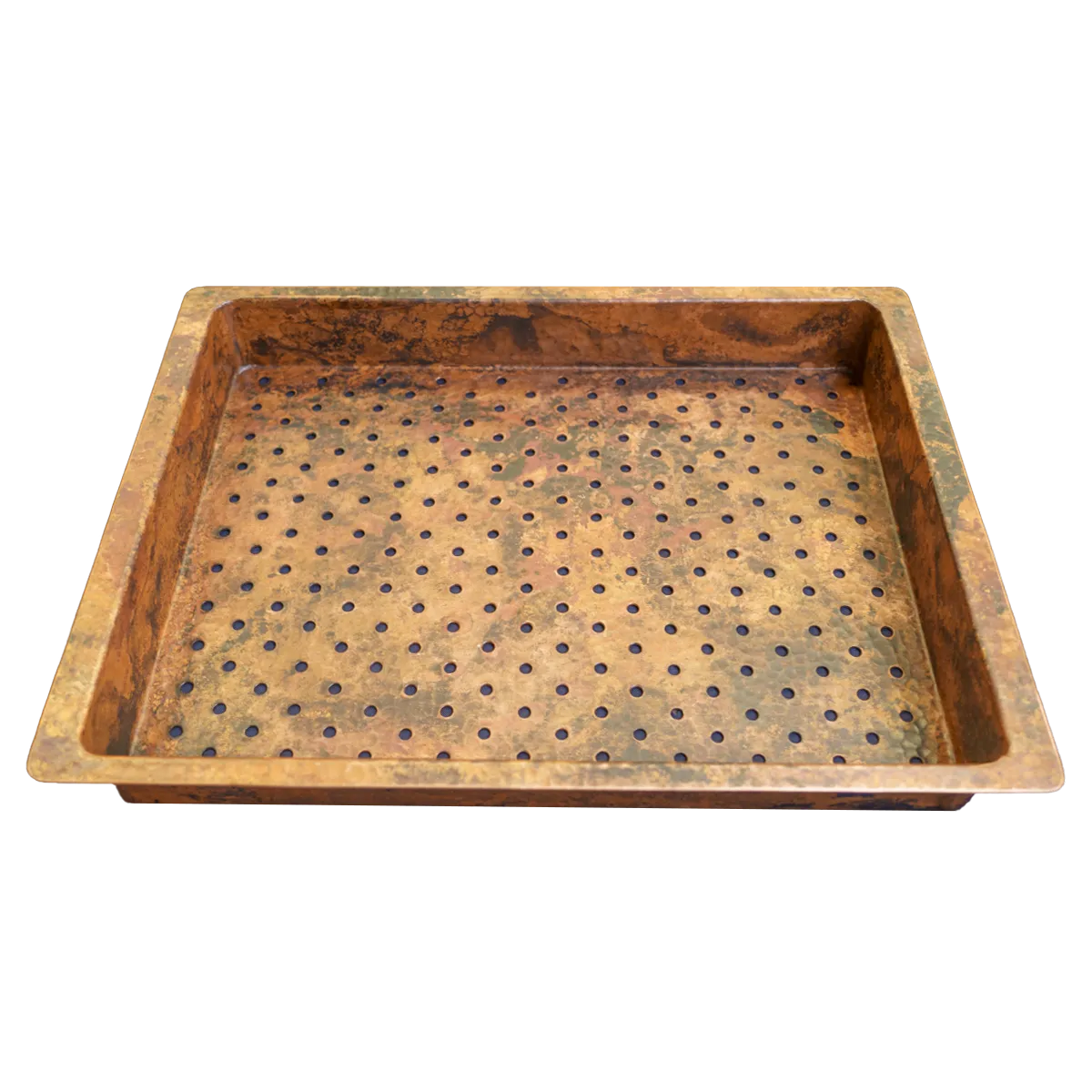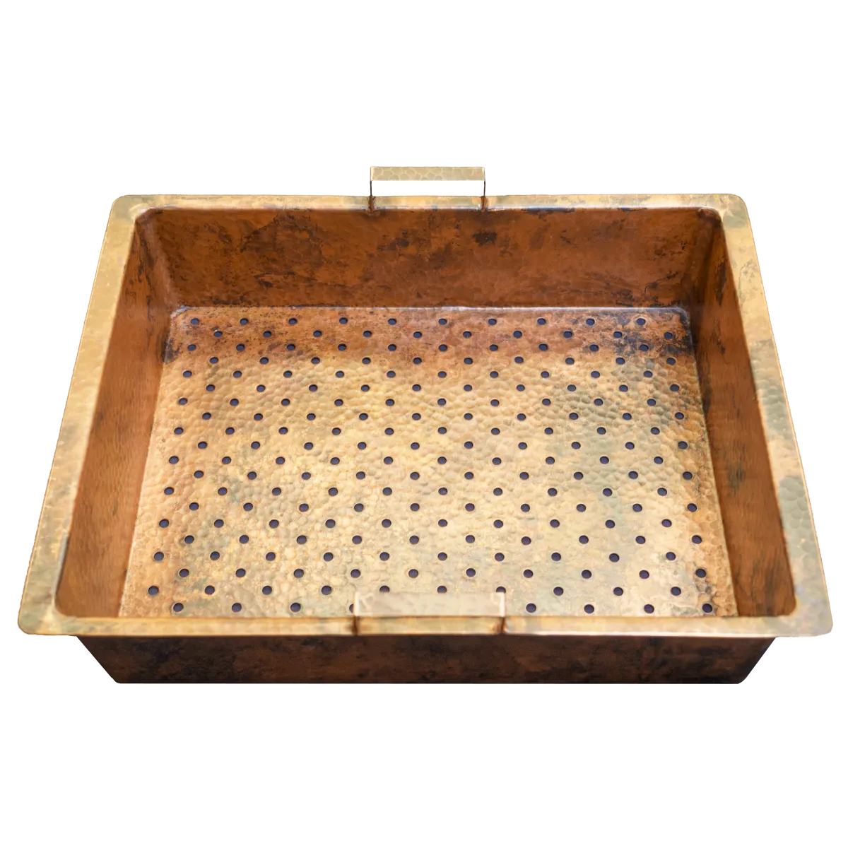 Copper Strainer Basket — Handcrafted by skilled artisans in Santa Clara del Cobre, Mexico, using 99% recycled copper, this strainer basket combines practicality with timeless design. Ideal for workstation sinks, it helps you rinse, strain, and dry ingredients with ease, while adding a refined artisanal touch to your kitchen.
