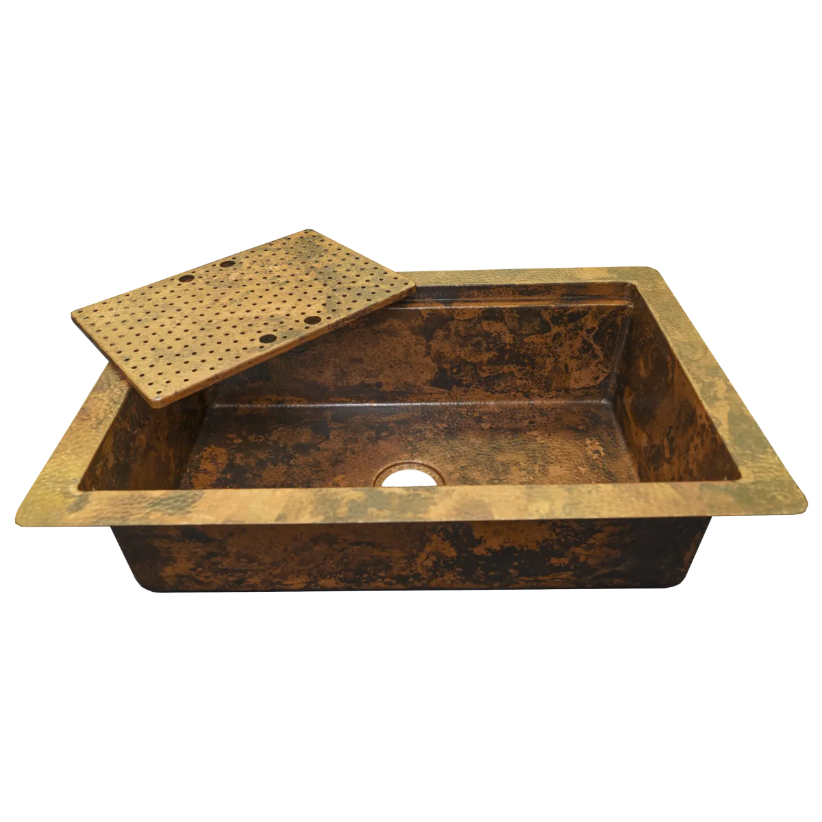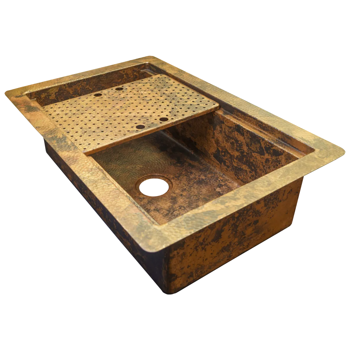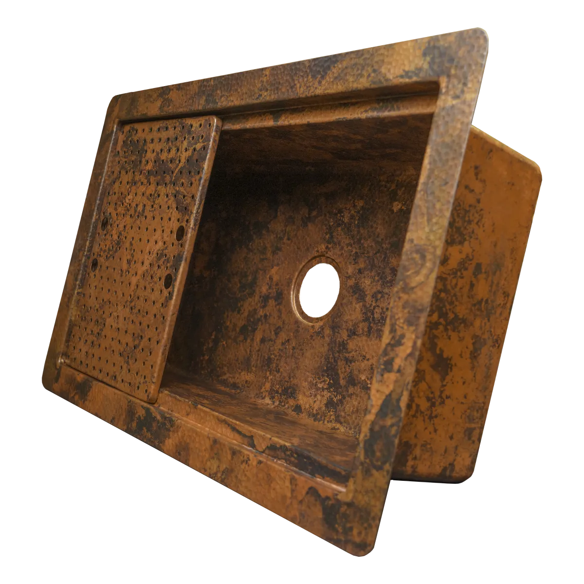 Elevate your kitchen with the perfect blend of beauty and functionality. This undermount copper workstation sink is handcrafted in Santa Clara del Cobre by skilled artisans who shape and hammer each piece by hand, giving it a distinctive texture and warm, living finish. The integrated workstation ledge allows you to customize your workflow with accessories like cutting boards, drying racks, and colanders — all while enjoying the elegance of solid copper. Naturally antimicrobial and highly durable, this sink is built to serve you for decades while developing a rich patina that tells its own story over time.