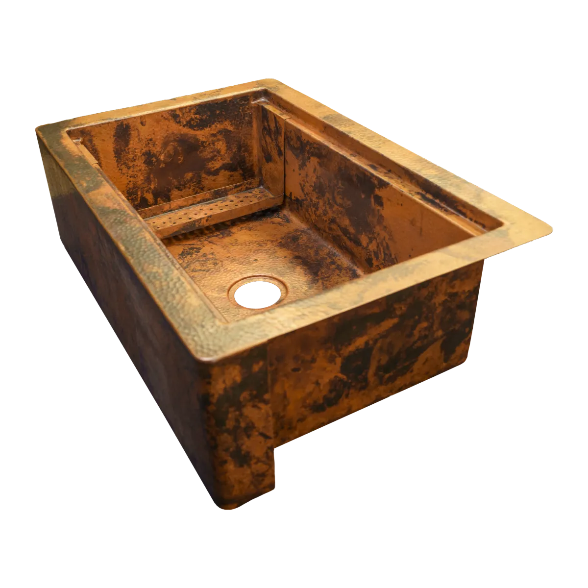 The XL Copper Sponge Rack is designed for those who need extra space to keep their cleaning tools organized and within reach. Perfectly crafted for our workstation kitchen sinks, this larger version offers additional capacity while maintaining a sleek, functional design. Hand-hammered by skilled artisans in Santa Clara del Cobre, Mexico, and made from 99% recycled copper, it blends practicality with artisanal quality. Its sturdy build ensures durability, while the natural antimicrobial properties of copper keep your sink area clean and fresh.
